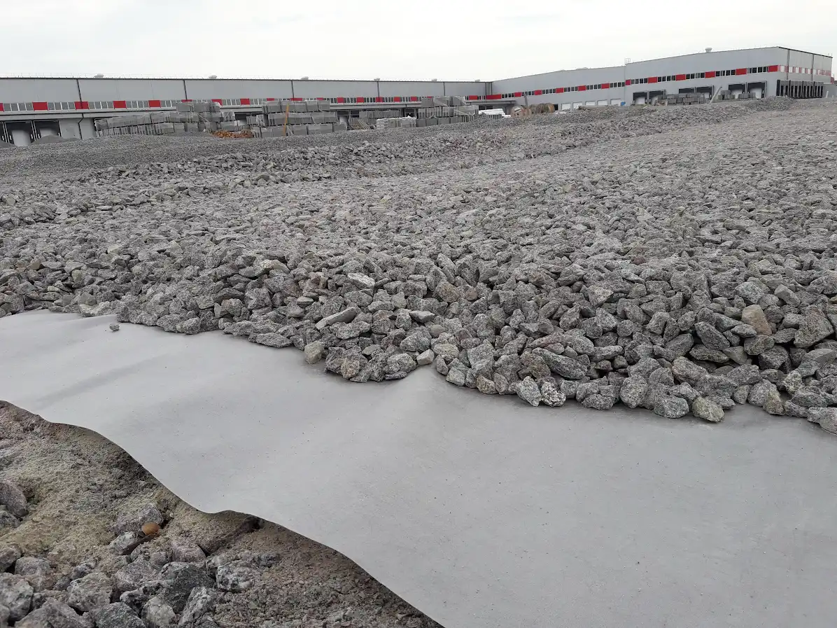 - утримує щебеневий шар від горизонтального зсуву, забезпечуючи його стабільність при дії повторюваних навантажень (ефект стримування);