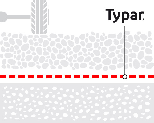 Геотекстиль виконує функцію армування конструкції, коли розподіляє навантаження та бере на себе частину напруги розтягування, які виникають у верхніх шарах. Це покращує роботу основи, зменшує її деформацію та забезпечує стабільність конструкції навіть при багаторазових навантаженнях. За рахунок використання геотекстилю Typar® SF 56 можна підвищити загальний модуль пружності конструкції.