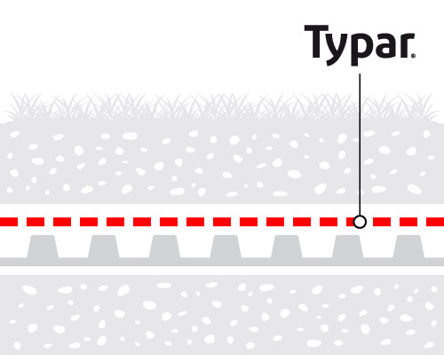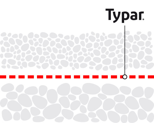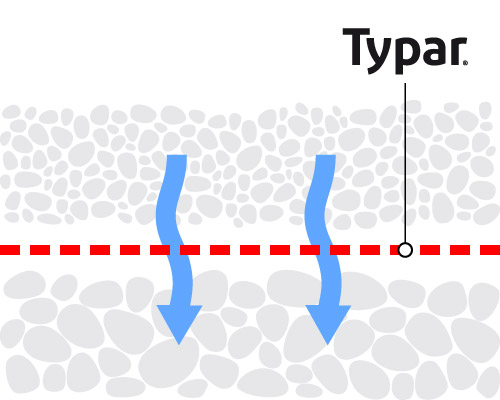 Typar® SF розділяє суміжні різнорідні ґрунти або насипні матеріали (наприклад, пісок і щебінь, ґрунт і пісок ), перешкоджає їх змішуванню, що зберігає їх фізико-механічні властивості та робить всю конструкцію більше міцною і довговічною. При цьому геотекстиль дозволяє потоку води вільно проходити крізь нього.